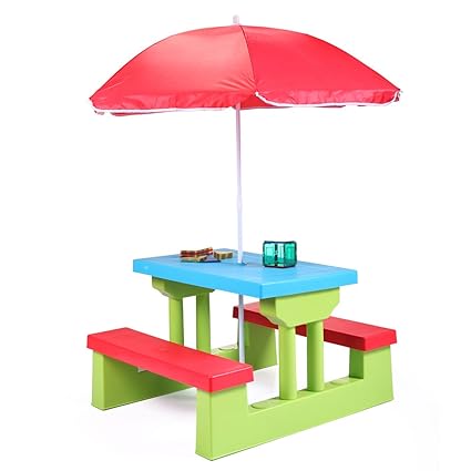 Plastic Picnic Bench Child Table Umbrella With Kids Full