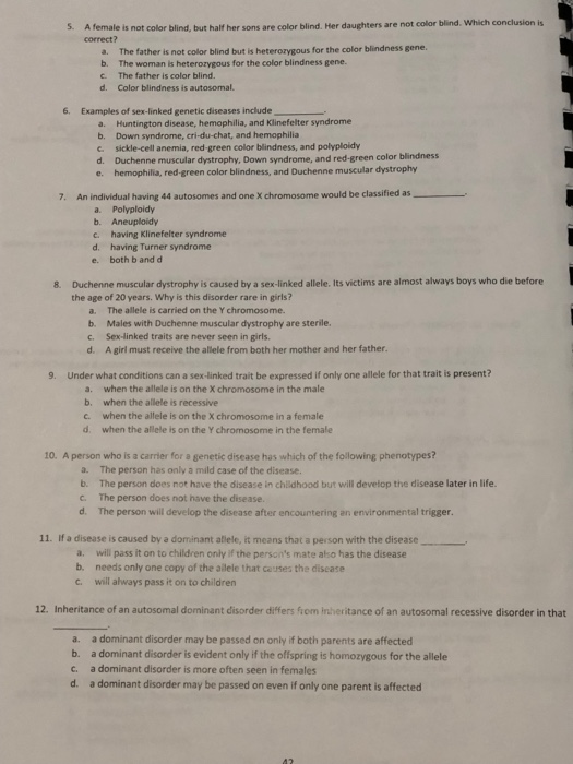 Solved A Female Is Not Color Blind But Half Her Sons Are